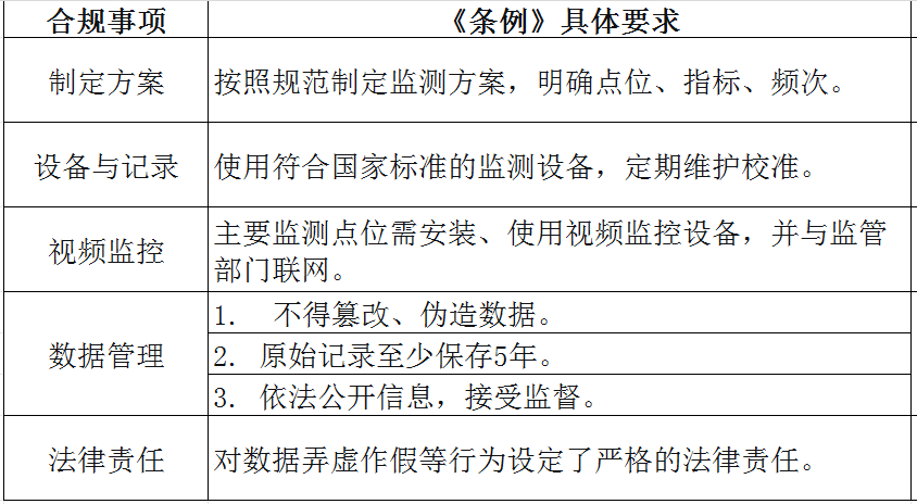對(duì)排污單位明確剛性義務(wù):需按規(guī)范開展自行監(jiān)測(cè),關(guān)鍵點(diǎn)位裝視頻并聯(lián)網(wǎng),使用國標(biāo)設(shè)備且定期校準(zhǔn),監(jiān)測(cè)數(shù)據(jù)實(shí)時(shí)上傳、留存?zhèn)洳椴⒁婪ü_,嚴(yán)禁造假;對(duì)第三方機(jī)構(gòu)要求資質(zhì)備案、執(zhí)業(yè)獨(dú)立,造假需承擔(dān)連帶責(zé)任。